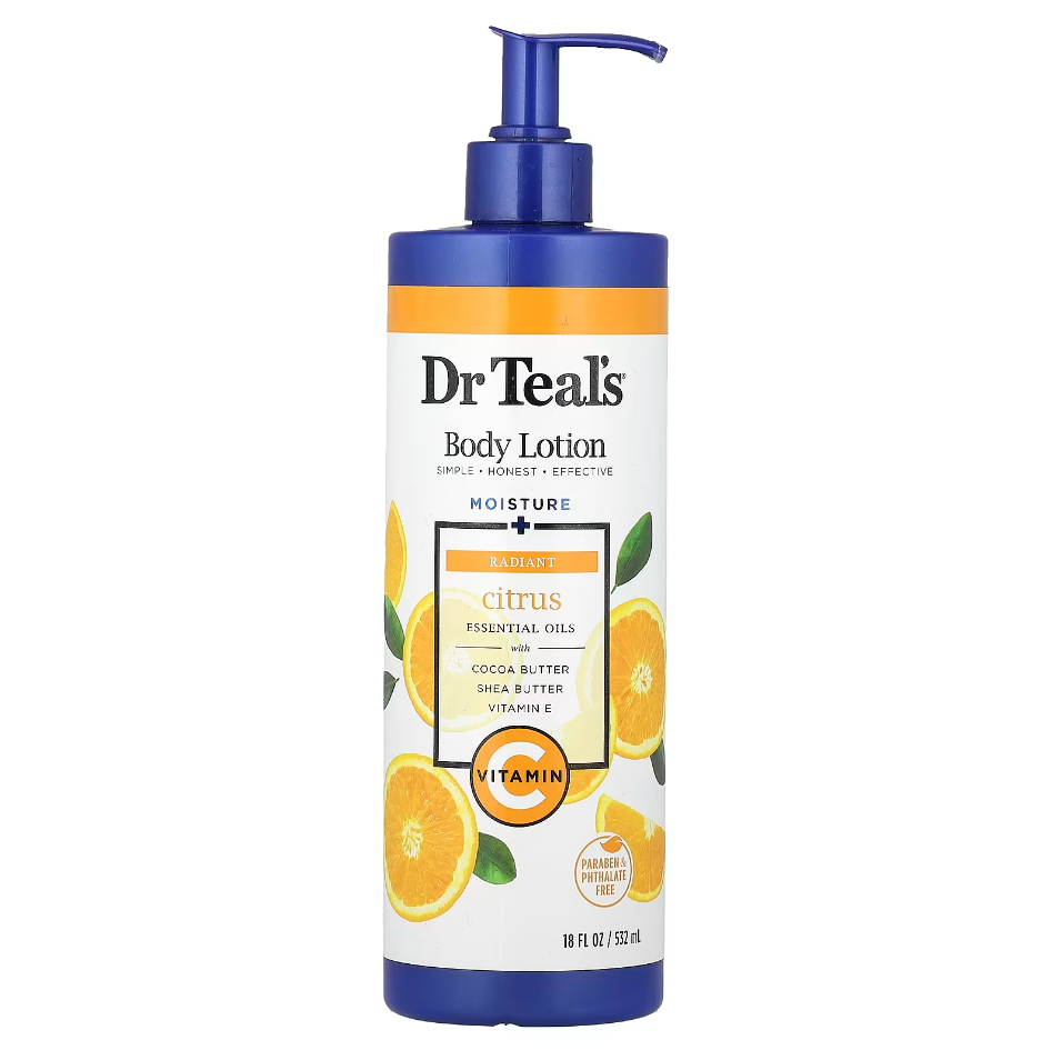 Dr Teal's® light-weight body lotion is formulated with moisturizing ingredients plus beneficial essential oils to nourish and renew skin. Vitamin C helps promote glowing, youthful skin, while Citrus essential oils help uplift your mood.